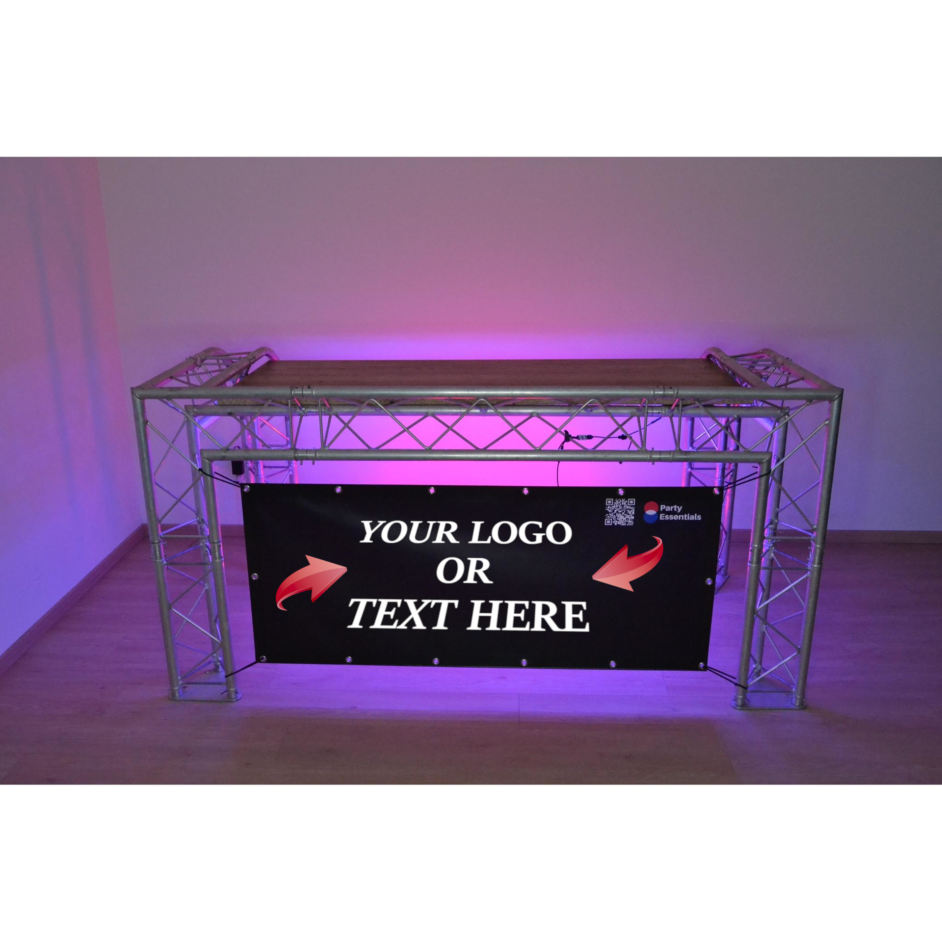 Sizes Available: 140cm x 60cm (Large DJ Booth) or 100cm x 65 cm (Small DJ Booth)